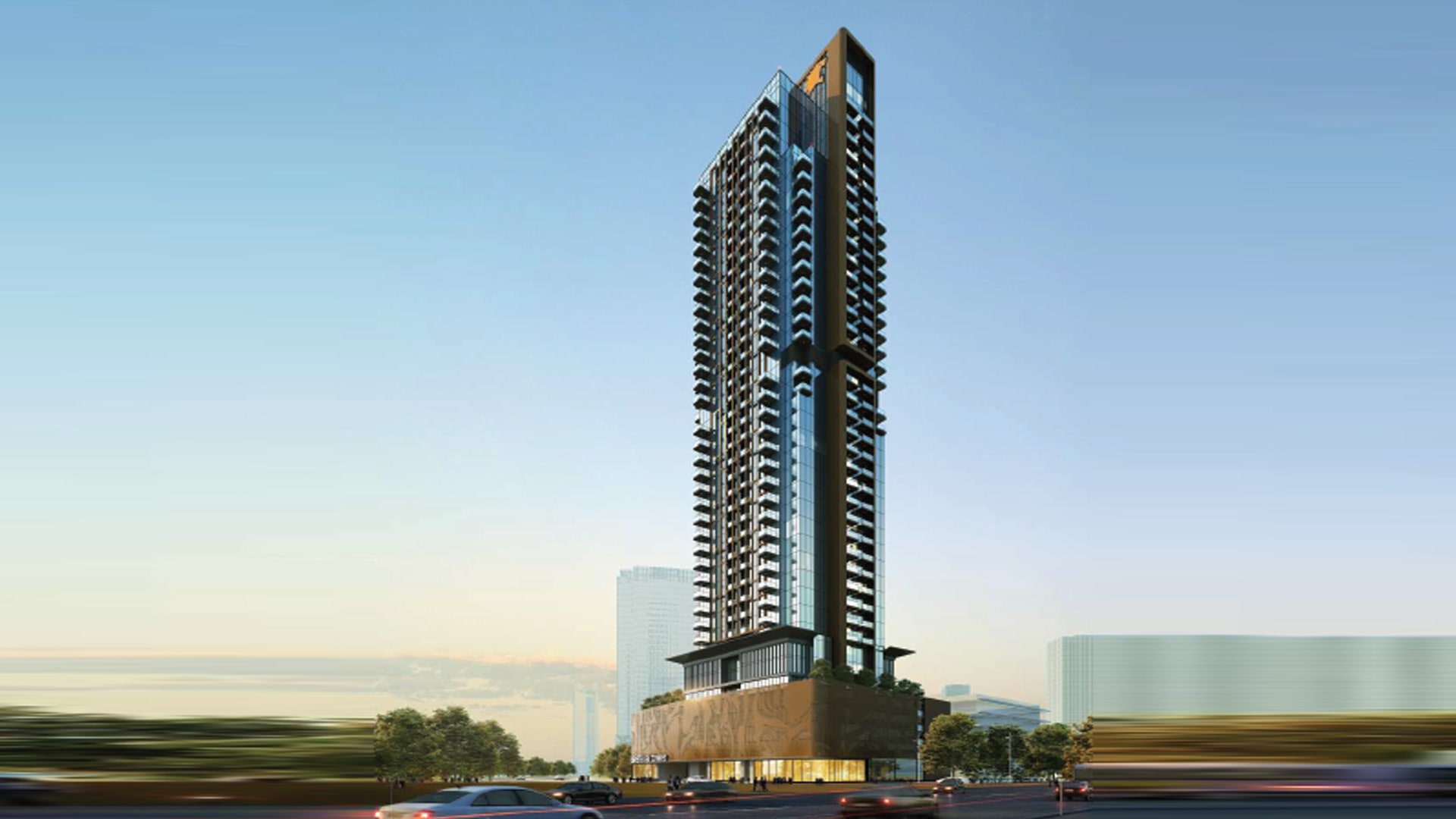 The latest release of Seslia Tower by Tiger Group at JVT, Dubai offers a collection of premium studios, and 1, & 2-bedroom apartments. The complex is a 36-story building with four levels of parking. It rises on a massive podium zone, the exterior of the structure is designed in a modern architectural style in a brown colour scheme with a glass facade, projecting balcony lines and a sloping roof. The exterior is designed by Next Engineering Consultants, which specializes in residential, commercial, and mixed-use design. The project includes 335 luxury properties in various sizes and layouts.